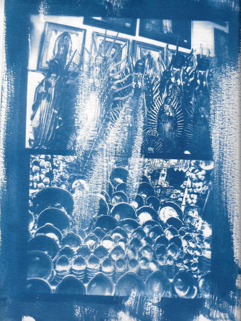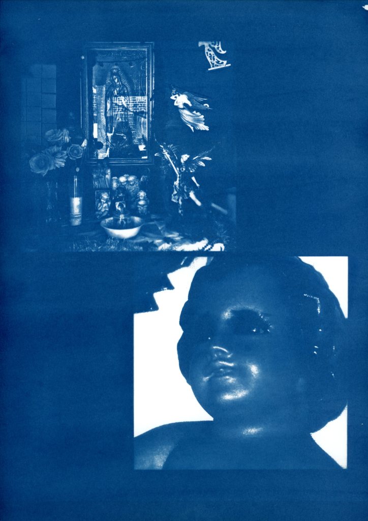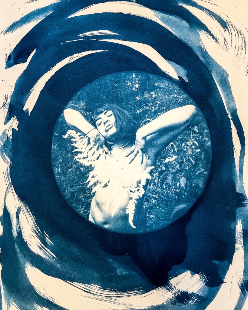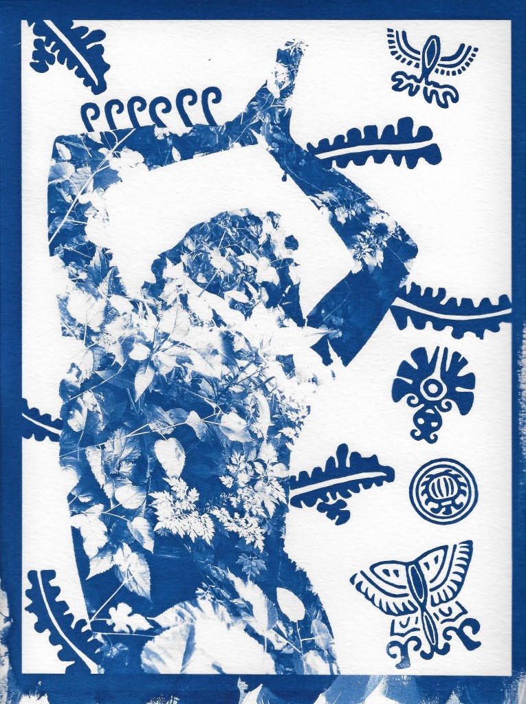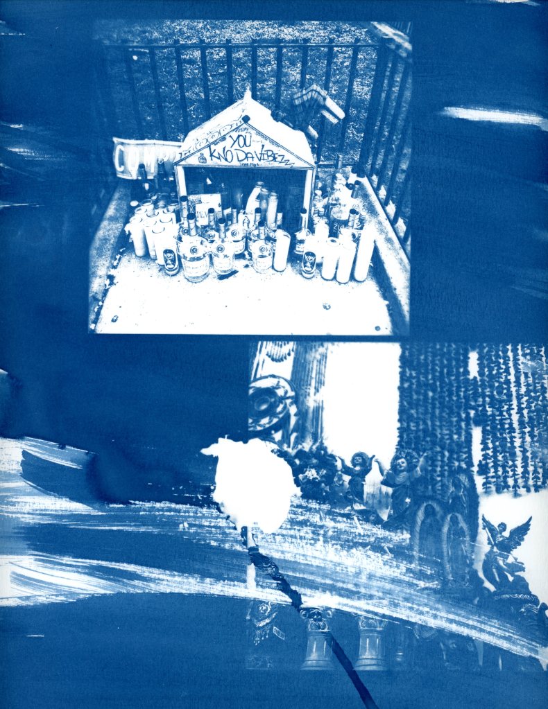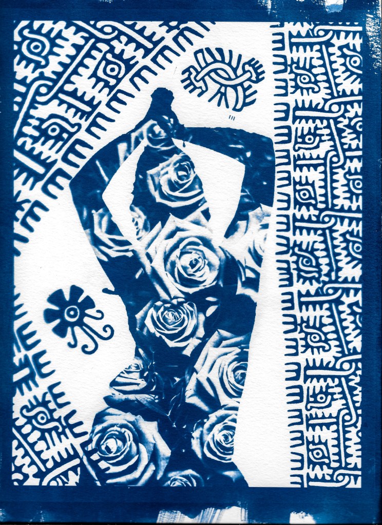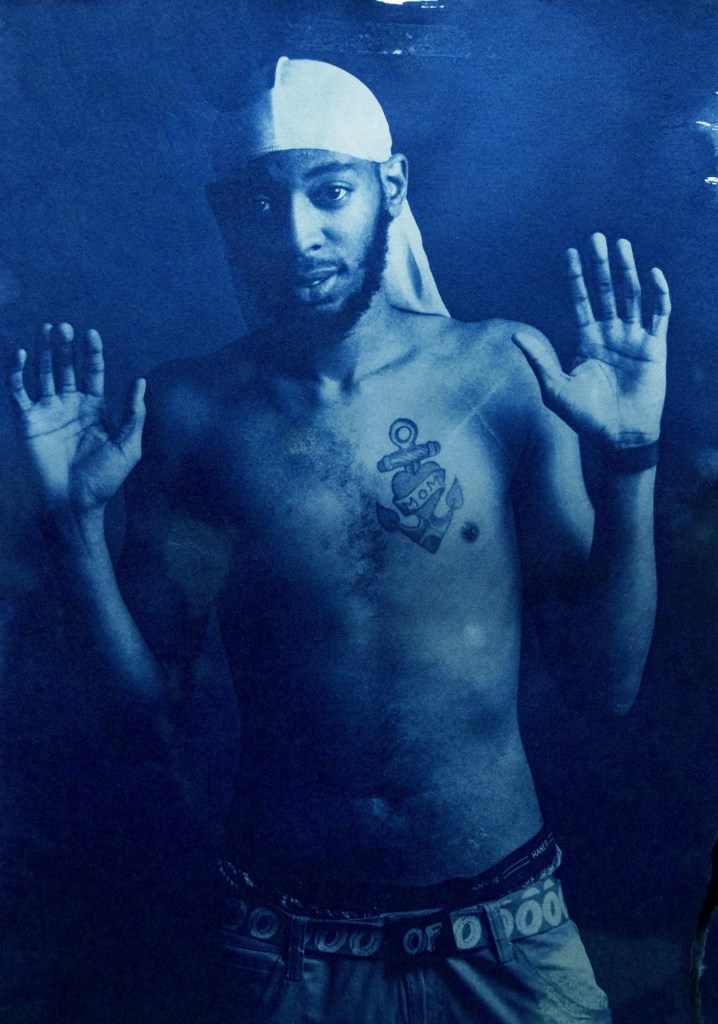 Displaying my photography and graphic designs through the cyanotype process is my way of expressing the complexity, grittiness and dualities found within the various themes that I cover within my work. My work revolves around spirituality, identity, family and capturing the existence and resistance of artists of color found within non-contemporary art spaces.